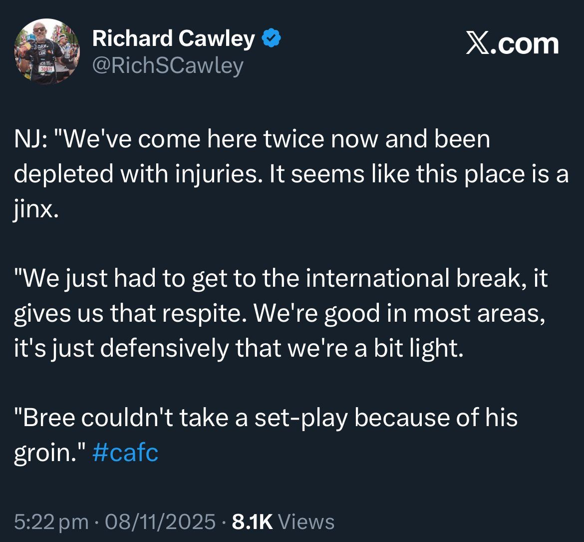 Acting like he’s been off it for weeks. He’s a defender that kept a clean sheet on Tuesday even if his set pieces were poor did his defensive duty just fine. Not sure 1 terrible game in 11 when he’s playing through a groin injury counts as a blipsam3110 said:I thought he contributed very little in the last couple of games if I'm honest. His set pieces on Tuesday night were awful, and he was very anonymous yesterday. We've been told he's got a groin issue, which is obviously hindering him, but without his set pieces I'm unsure what he brings to the side that JRC wouldn't have been able to give? Or Apter for that matter, given the lack of attacking threat yesterday you would have hoped that we could bring someone on to freshen it up and offer a different challenge to the Wrexham defence. Hope it's a blip and not the end of a honeymoon period for him