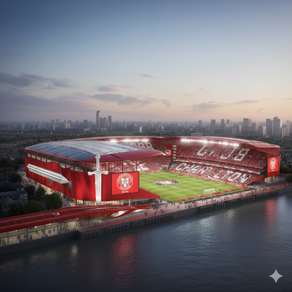 I was bored earlier and asked Gemini (Google's version of ChatGPT) to show me what a Charlton stadium of the future looked like if we had to move from The Valley. Apparently we'd move back down closer to The Thames, so the mist can quite literally roll in!