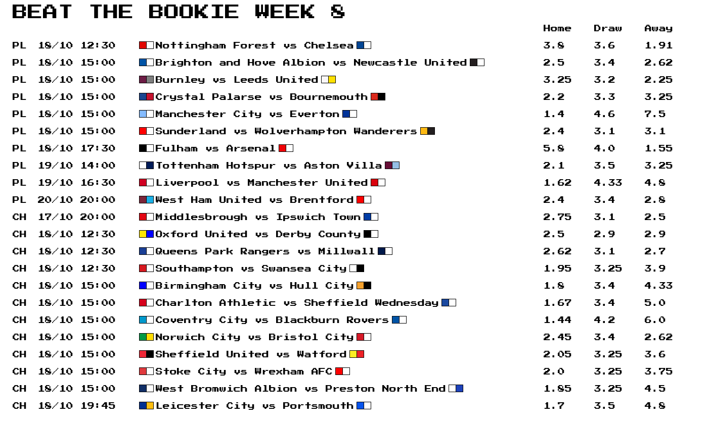 BEAT THE BOOKIE 2025/26 - Week 8 fixtures