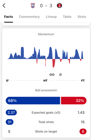 Momentum analysis on FotMob app tells a story.