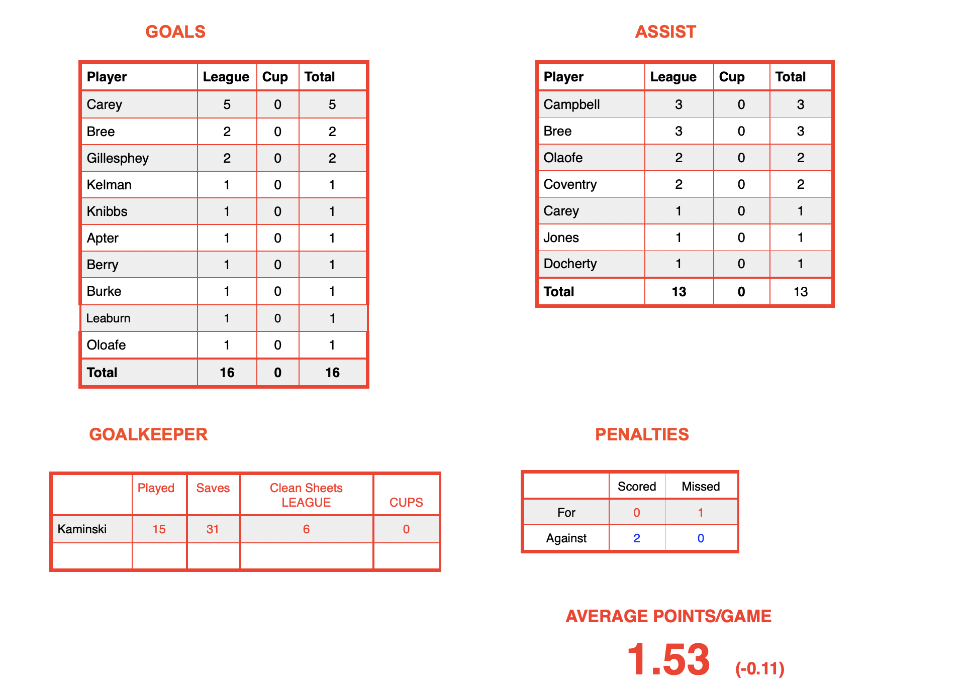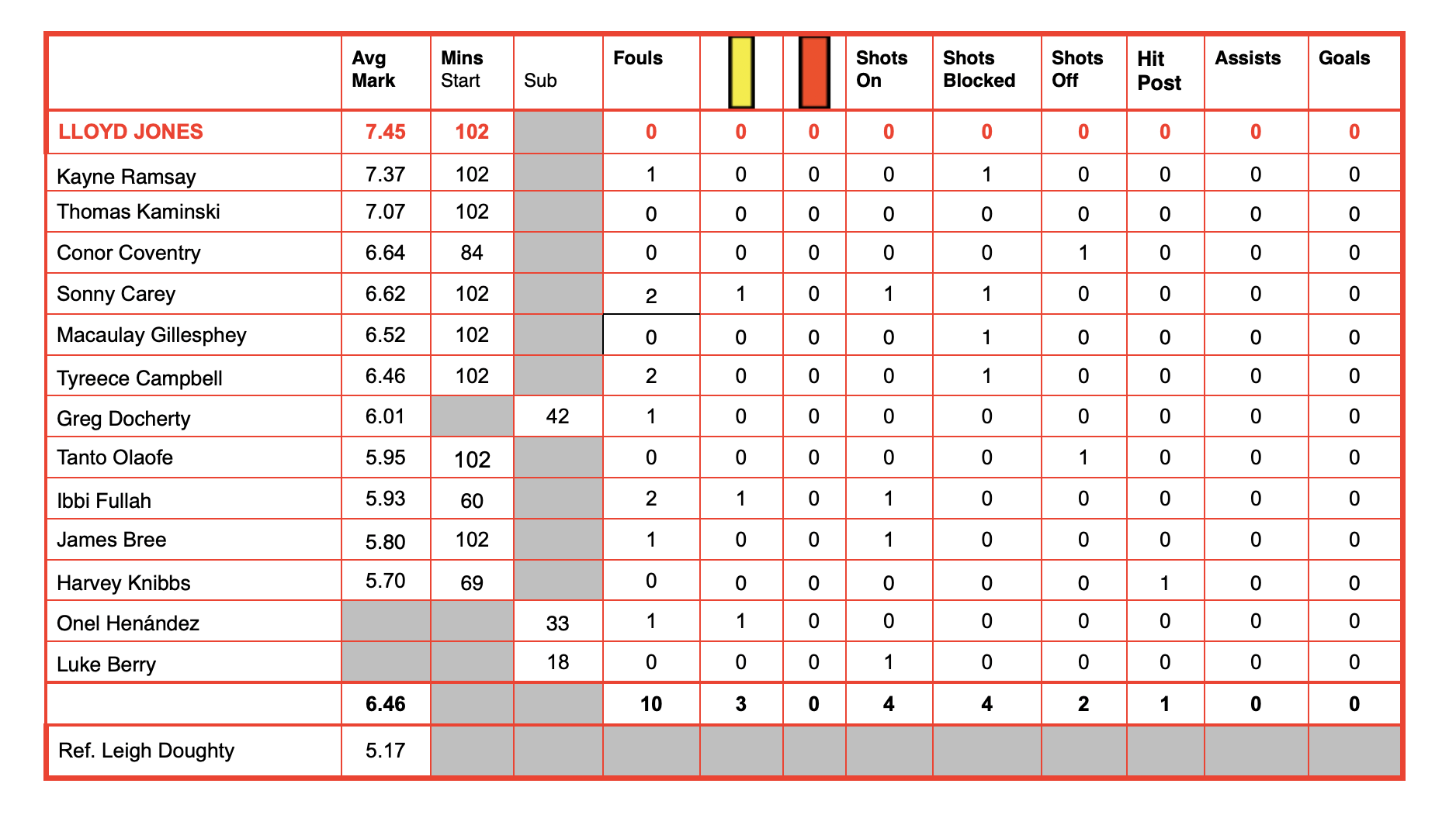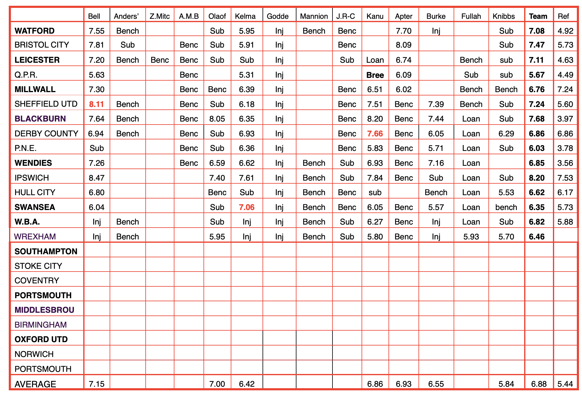 I always thought (perhaps wrongly) that when we win, the scores are good and when we lose, the scores are poor. That doesn't seem to be so true this year, which is encouraging. It reflects how well we think this team battles even when it's not going as well as it might. Of course, we did produce some dire performances in League One.3