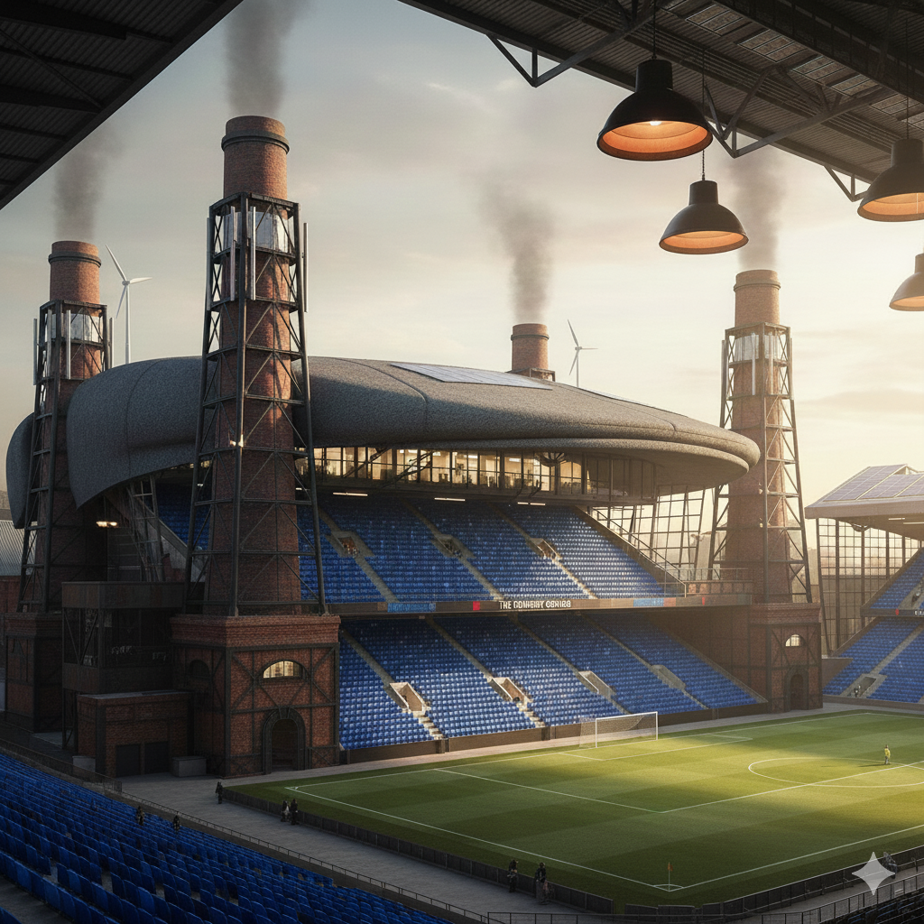 Think it looks naff personally, all for something different and with a nod to the city's history but it just looks like all modern stadiums with random chimneys stuck on it.