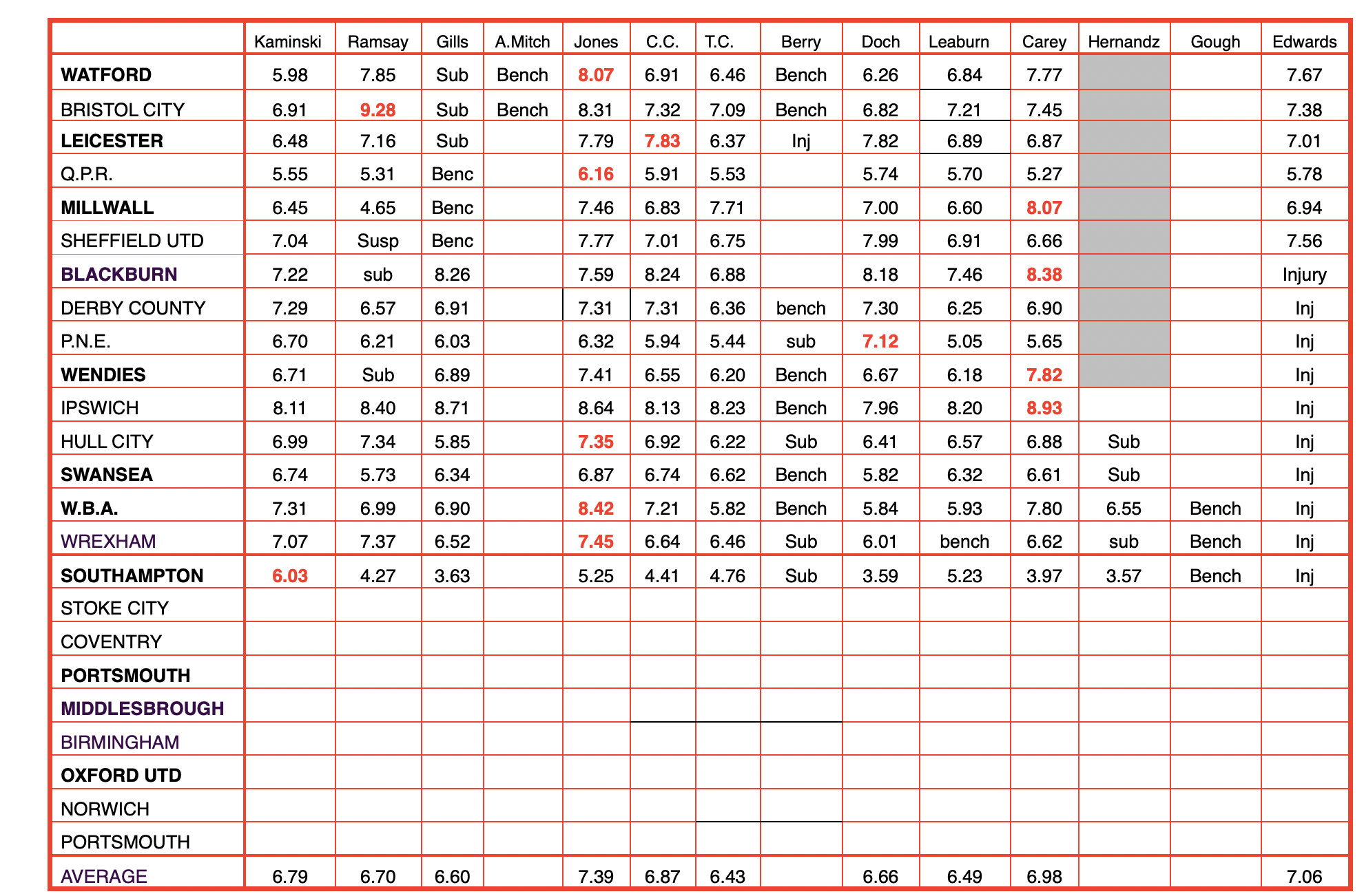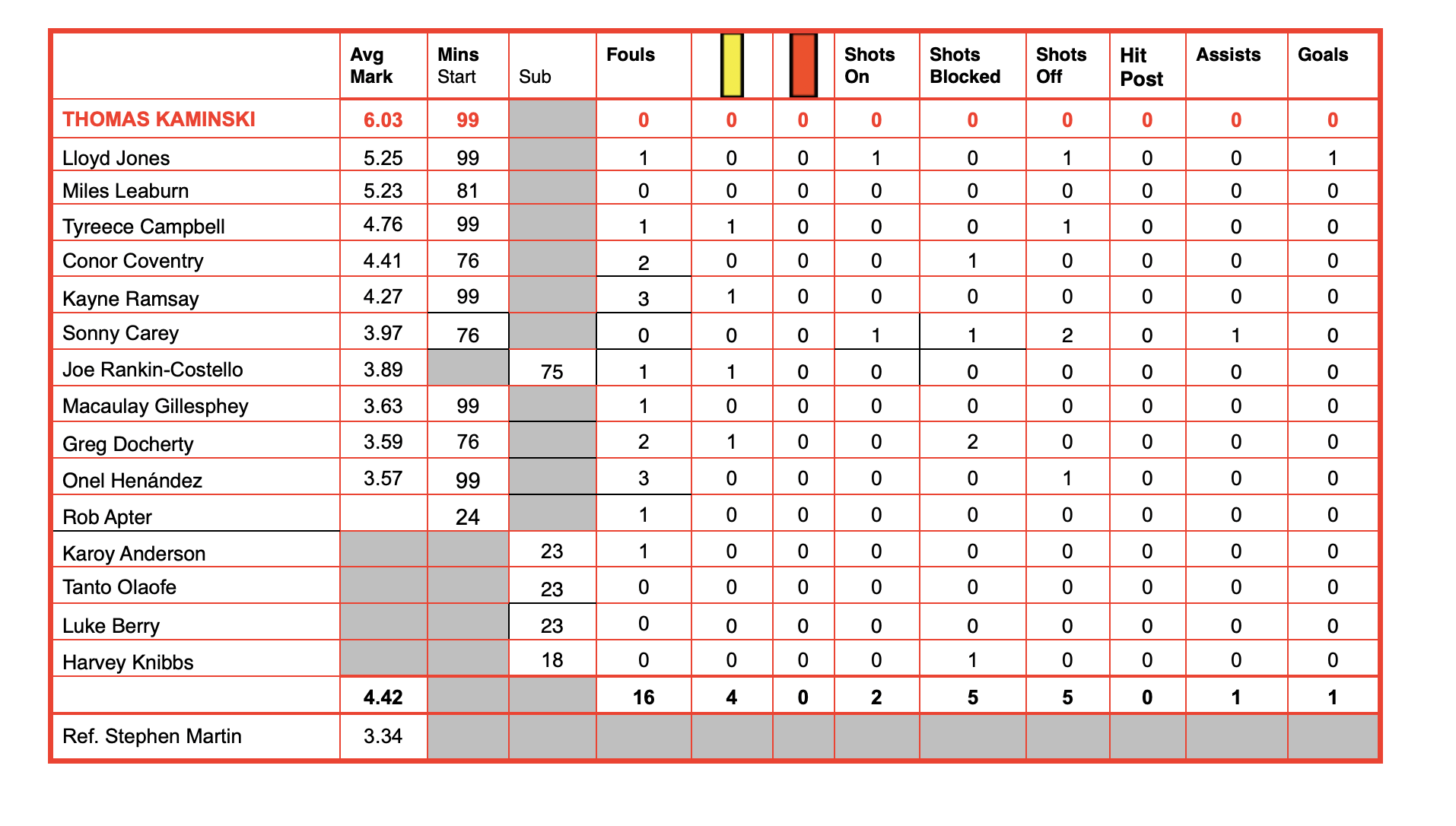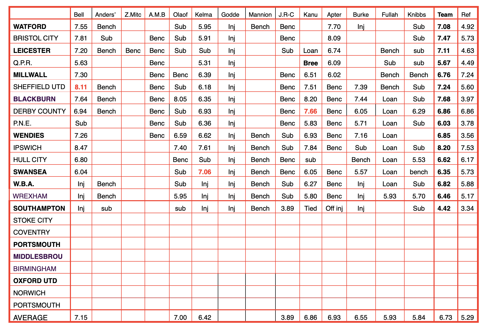 Brutal scoring there! Surprised anyone got an average of 4+ apart from Kaminski tbh! #wegoagain0