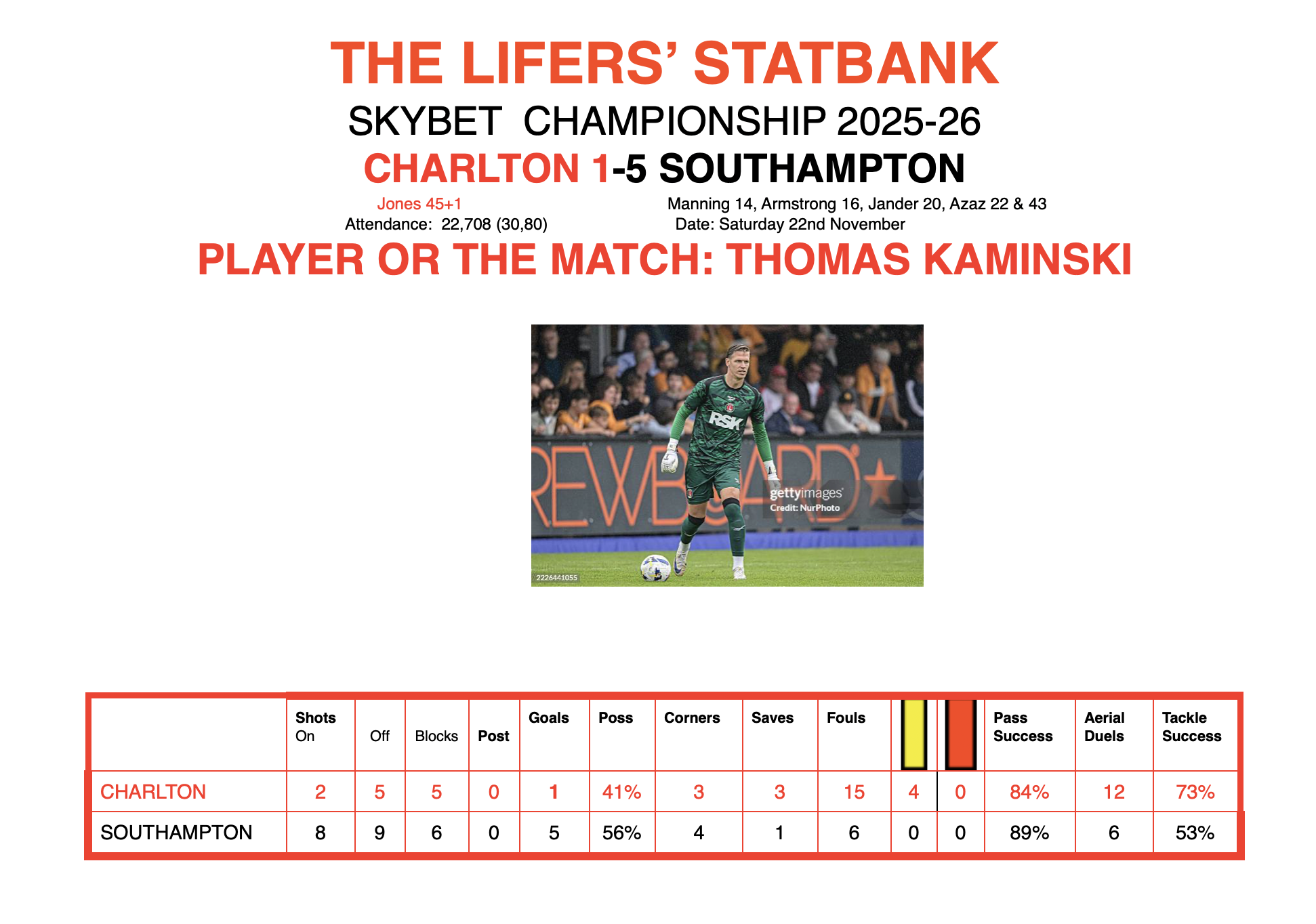 STATBANK: CHARLTON 1-5 SOUTHAMPTON