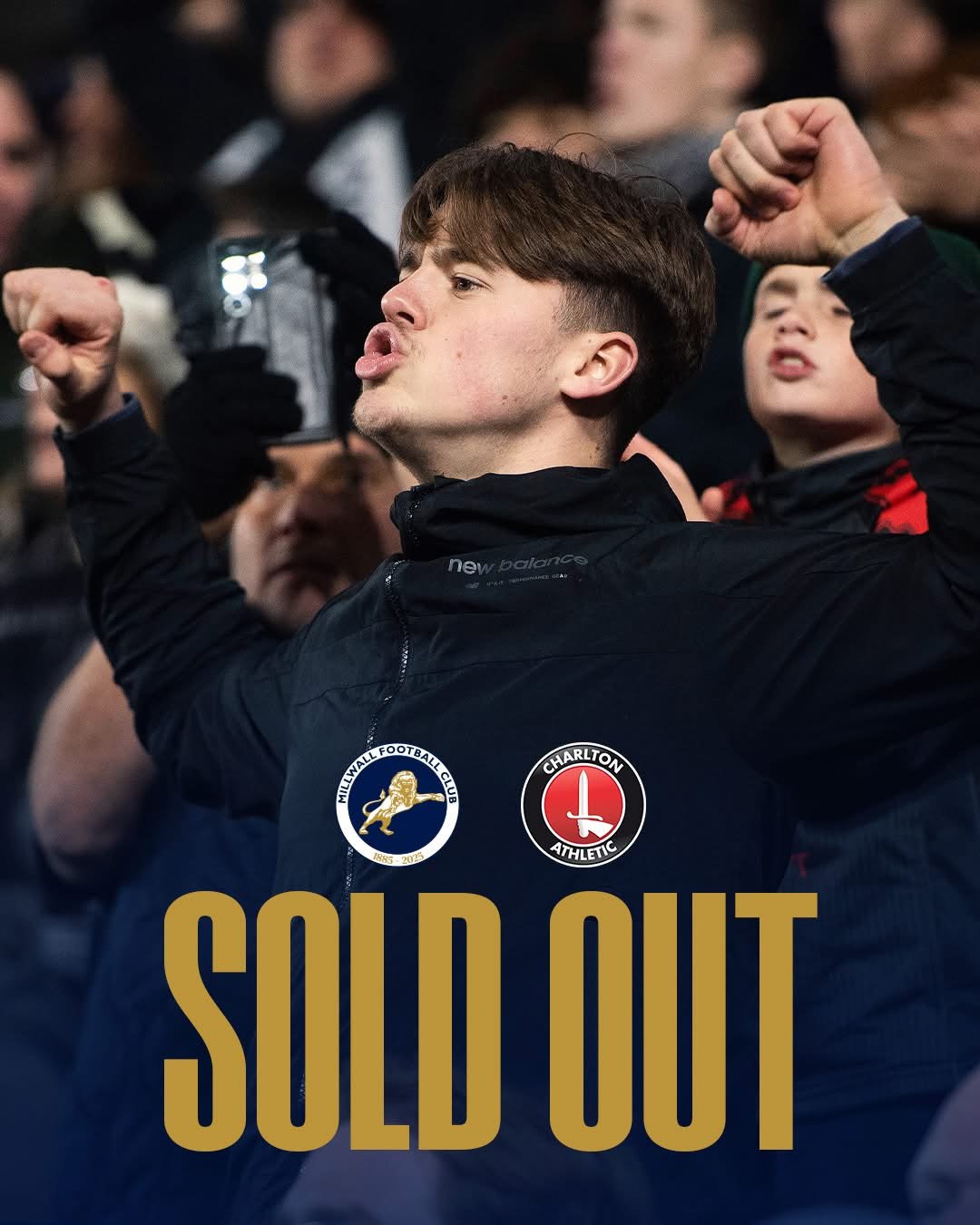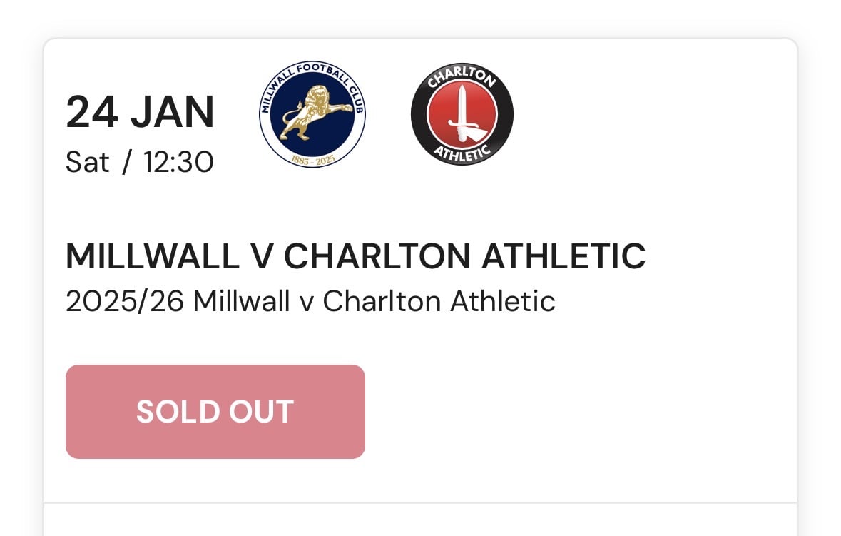 Sold out for us as well. Roll on the 24th. The only genuine SE London Derby. Should be a good one and I’m predicting another tight game that could go either way. I’d take a draw, just to keep the run going into its 30th year 😁2