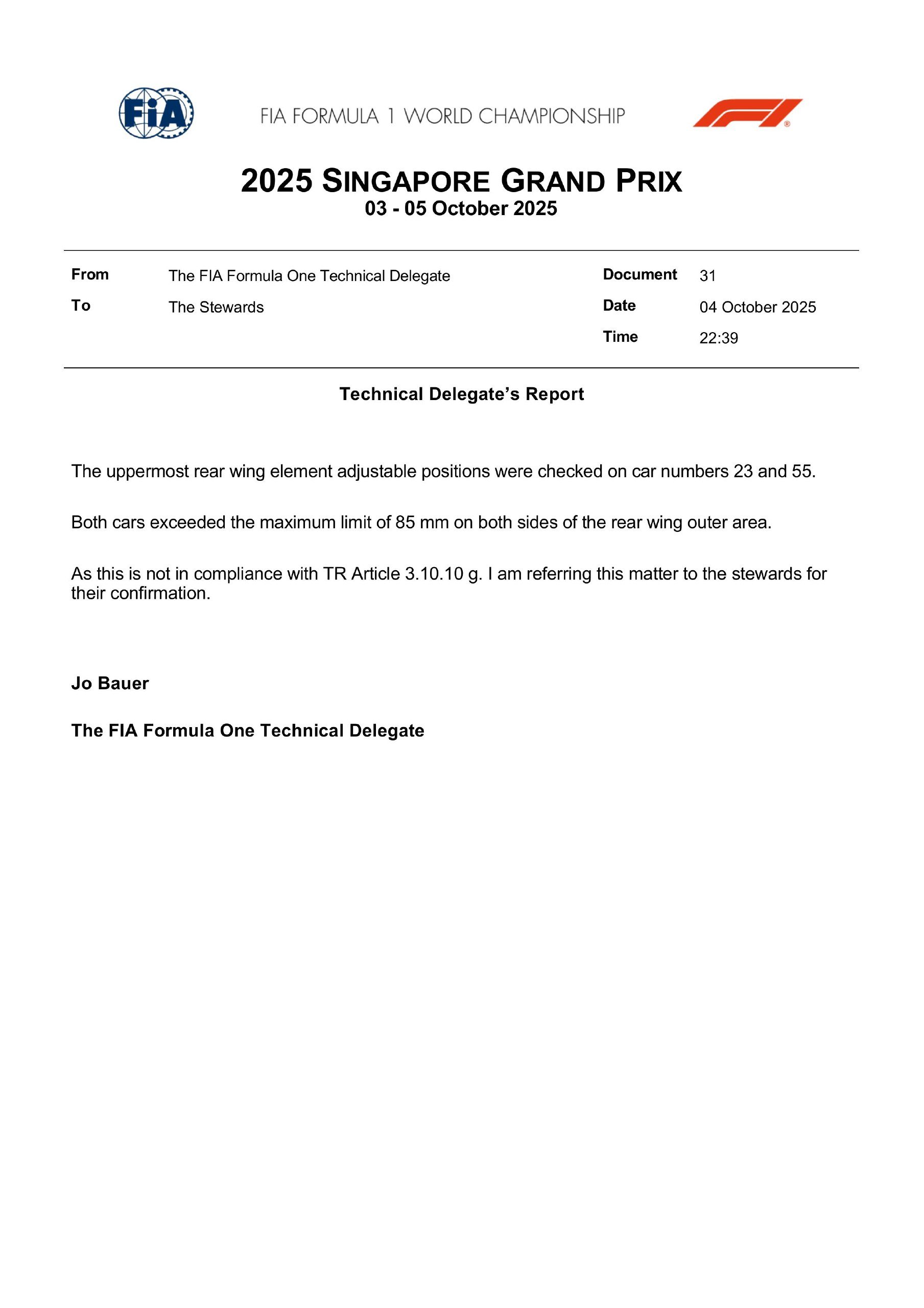 Both Williams cars DQed from qualifying. Will start from the pits1