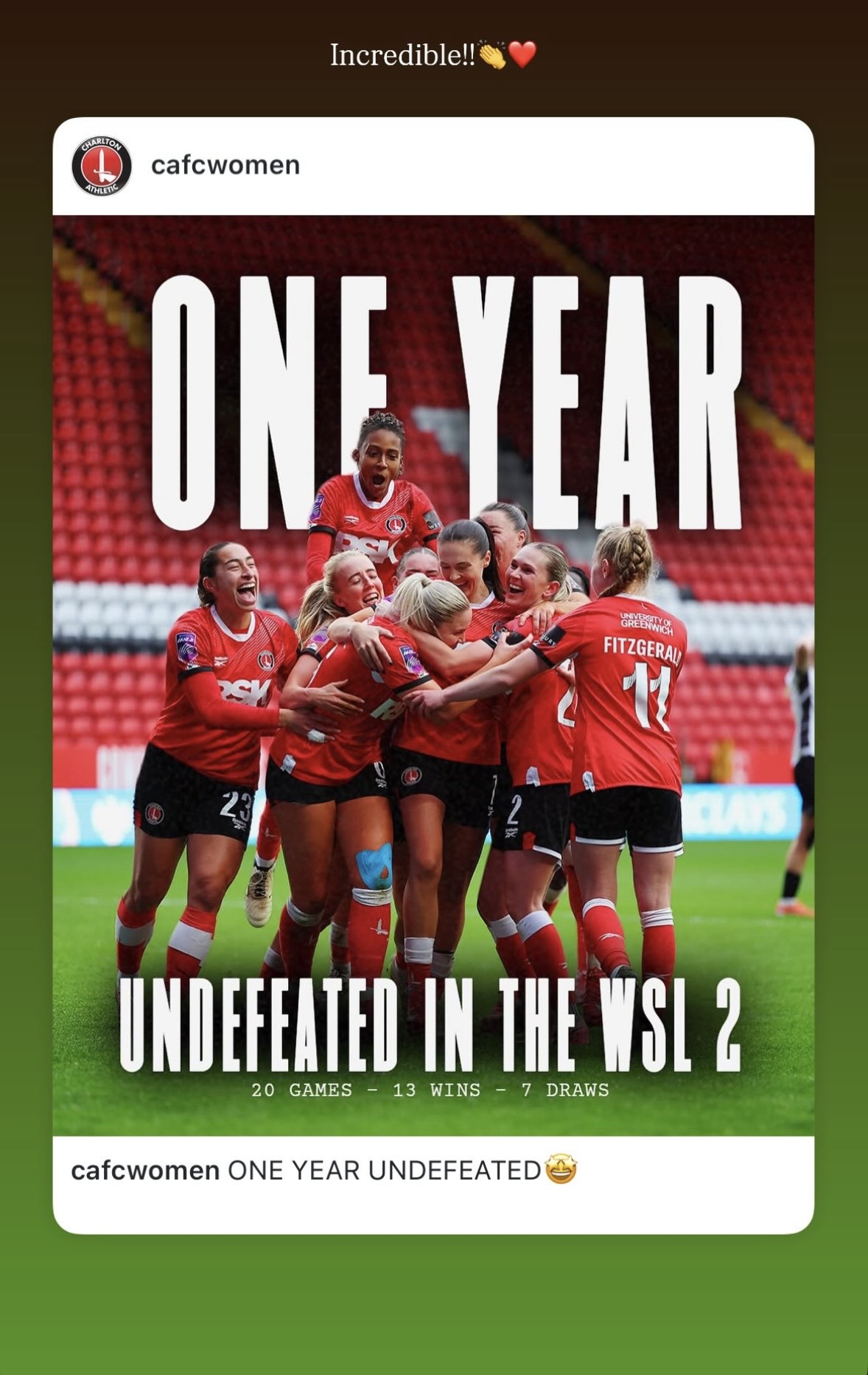 As others have said, that second half performance in particular was outstanding. We pressed them really effectively high up, which meant they hardly ever managed to get the ball into the final third, and if they did, either a Charlton head or body was in the way or Sophie Whitehouse came out to deal with it. We grabbed control of the game in the first 15 minutes after half-time, firstly with a coolly taken penalty by Katie Bradley after a foul on Muya and then with a goal from Gracie Pearse, inexplicably left alone in the box to stab home. Bradley then nearly scored a wondergoal, wriggling out of a tight spot in our own half, striding forward and hitting a shot from long range that the keeper just managed to push around the post.