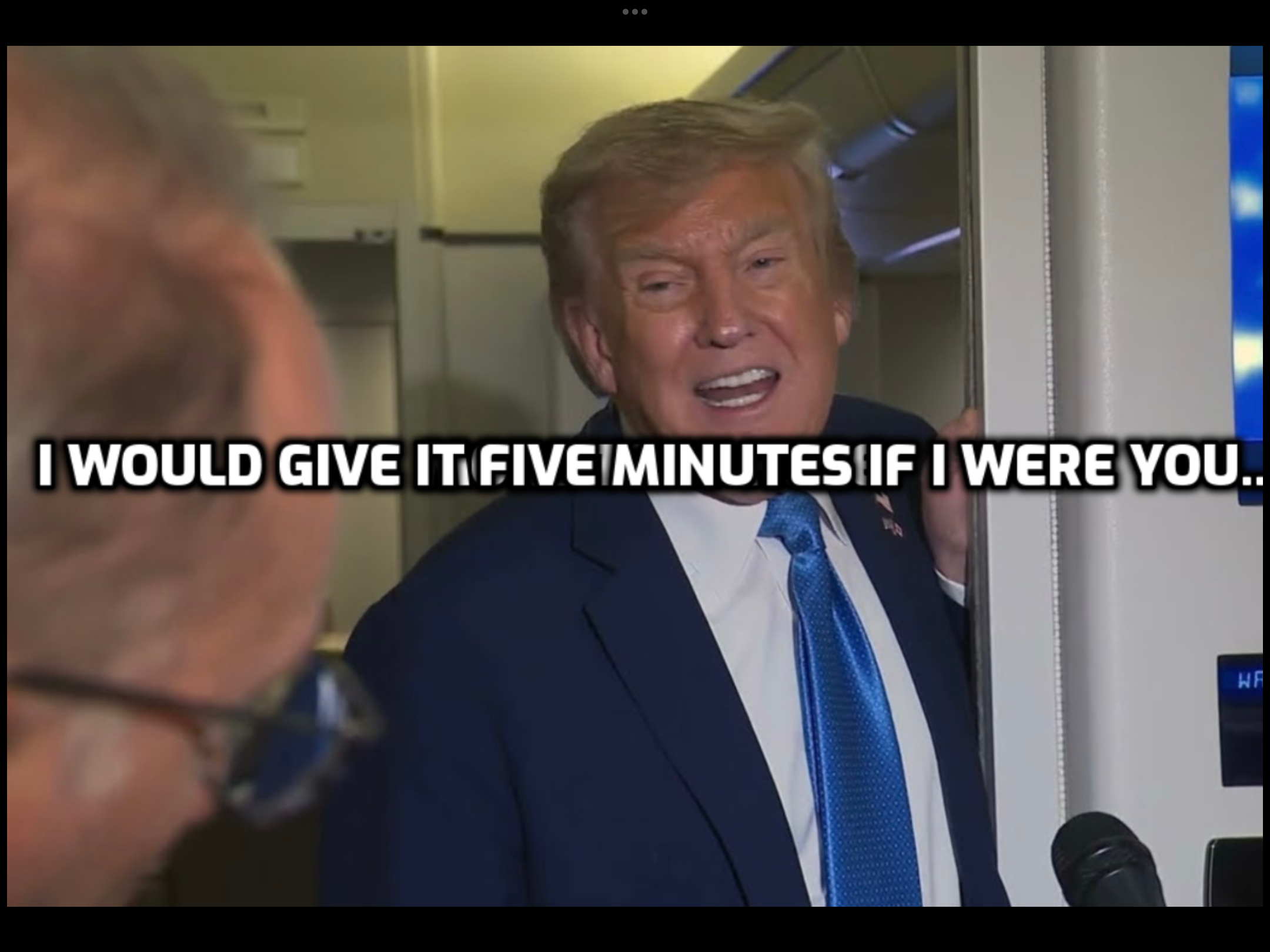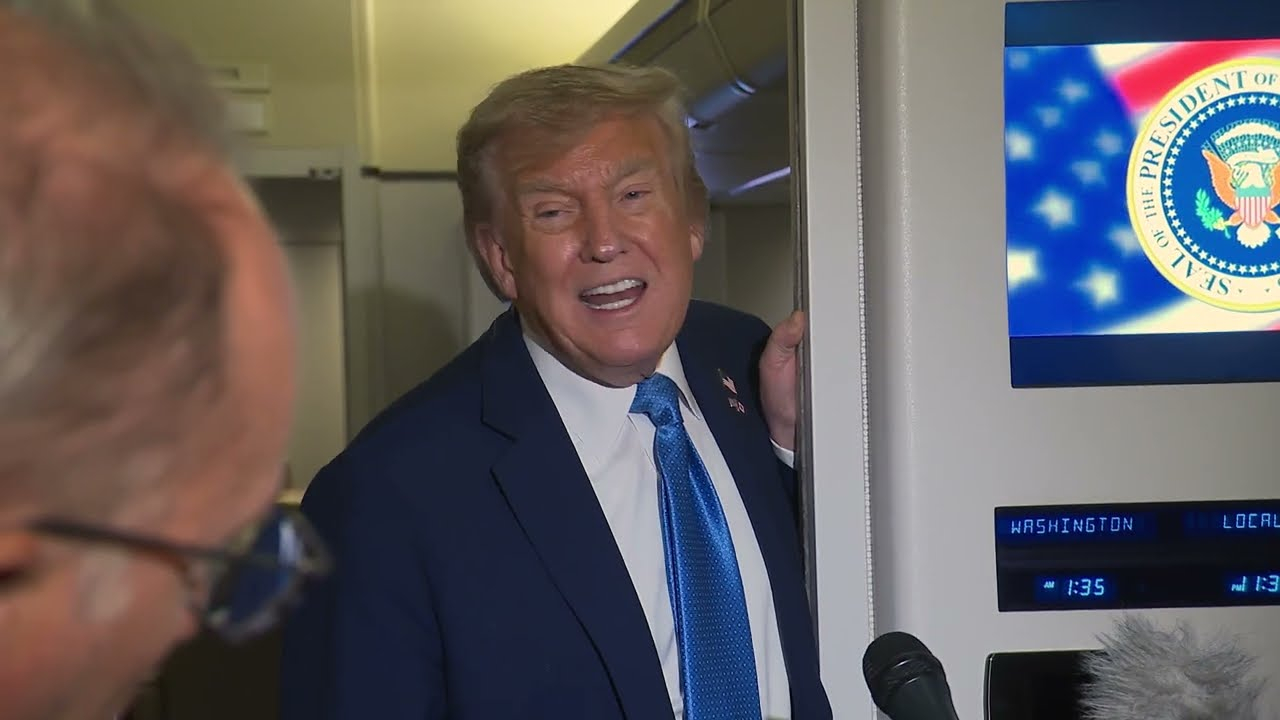 Whenever Donald Trump gives an interview to the travelling journalists on Airforce one it looks like he's just coming out of the toilet.