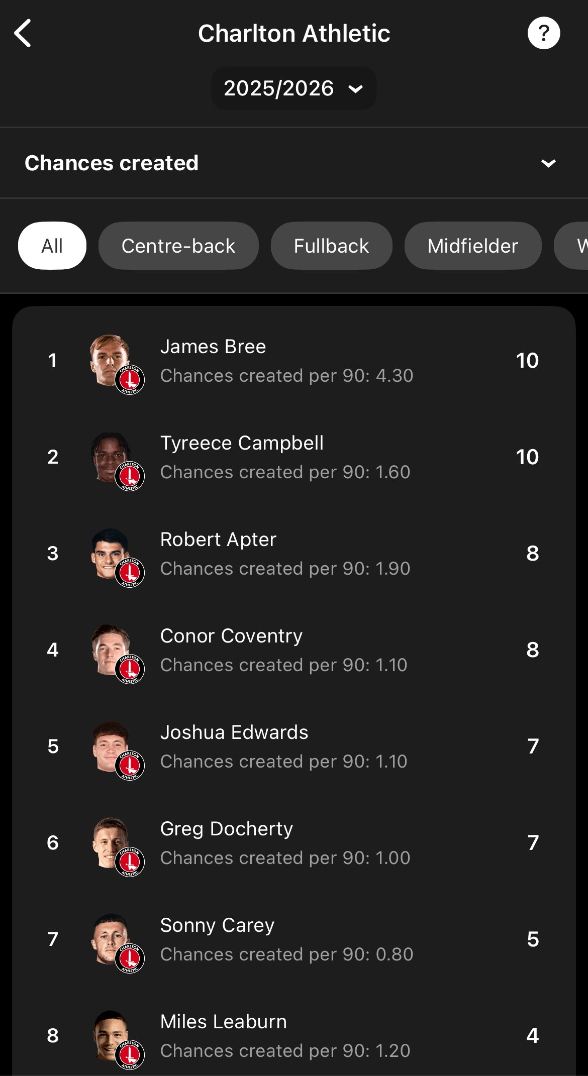 Campbell's xA is lower than players such as Edwards, Bree (from 2 games), Apter, Jones and Coventry. He isn't as good at chance creation as you think.1 -