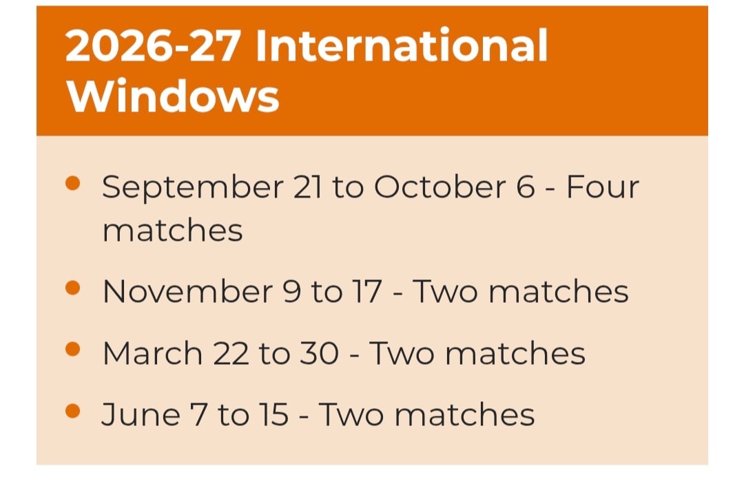 The start of the 2025/26 season is being interrupted by three international breaks in three months. That will be reduced to two next autumn as FIFA has decided to merge the September and October breaks into one three-week break, which will allow national teams to play four times instead of two