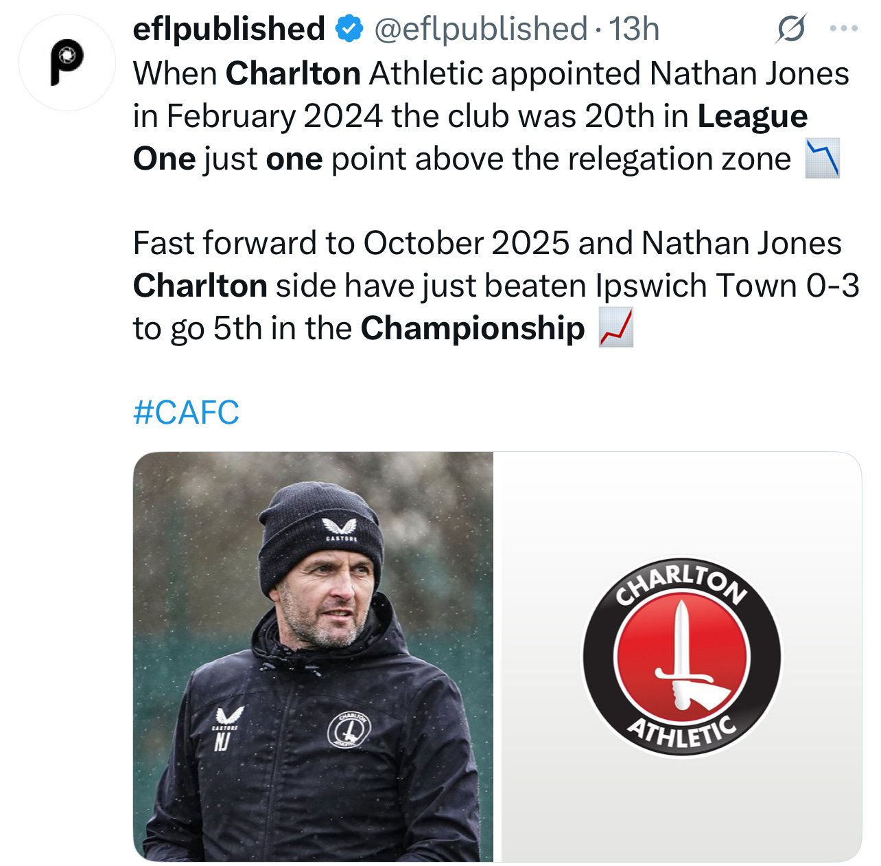 He may be a nutter, but he isn’t stupid either. Nathan and CAFC fit, he is in total control which is integral to him being successful due to his ego. The Southampton thing really smarts on him even in the interview the other night he referred to it. He knows Charlton as a club perform best when there is a point to prove, exactly like himself, he is being backed and appears to be loving life with us, long may it continue.4