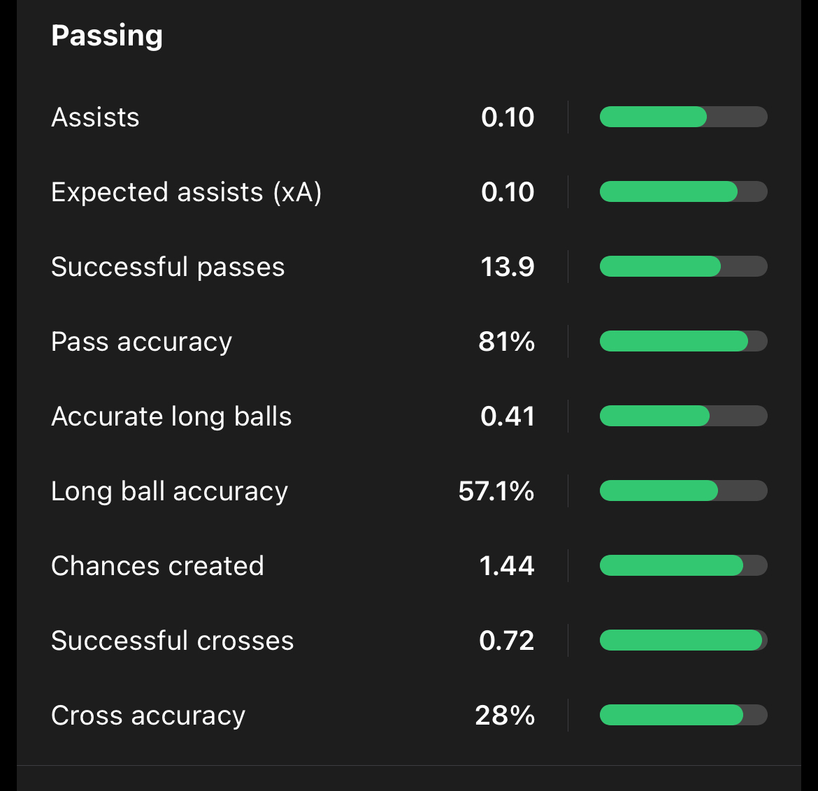 Still very erratic at best, a couple of awful crosses and passes straight to their men yesterday, would be interested to see his stats around pass completion / ball retention