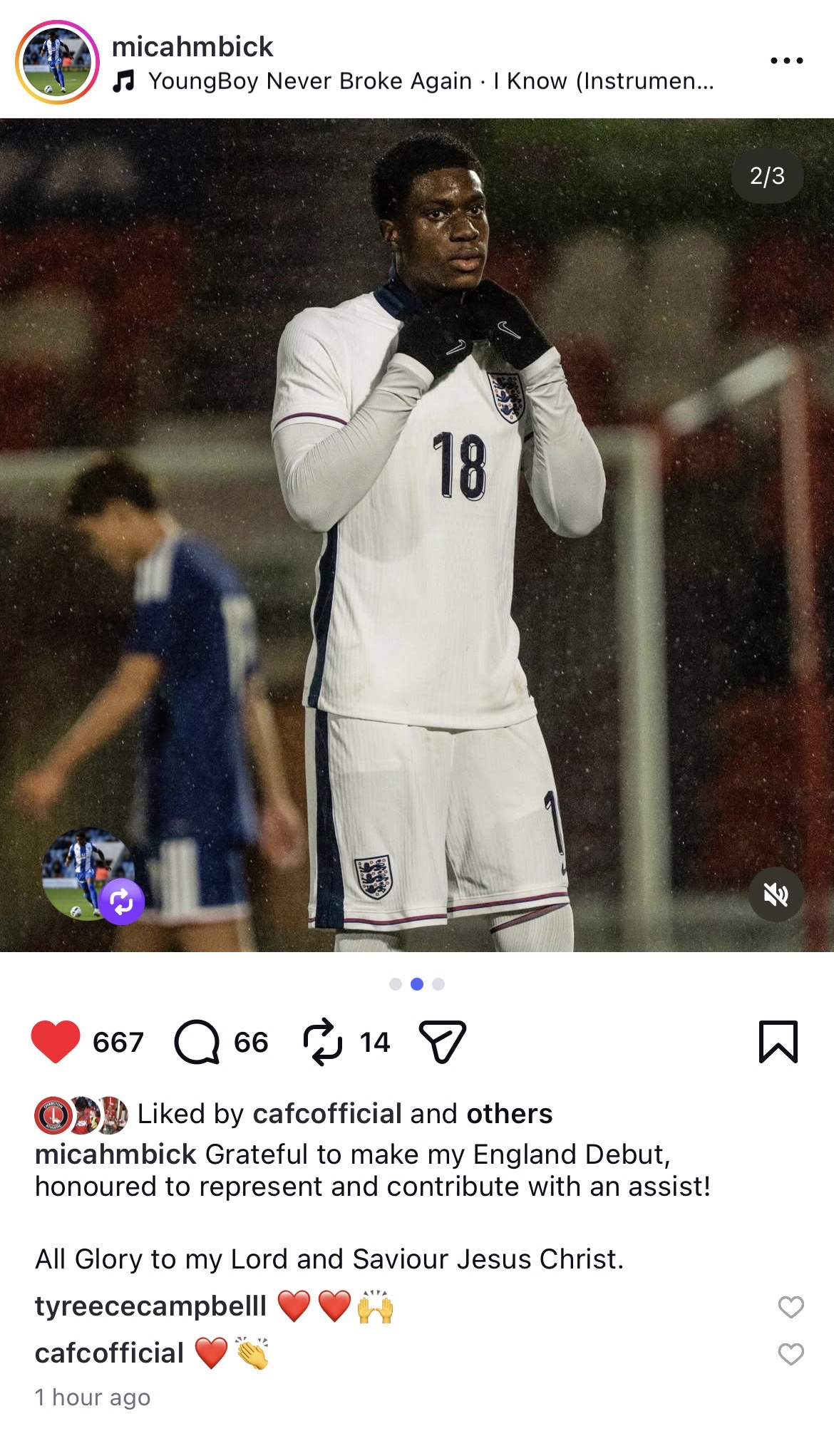 Micah came on at the 60 minute mark, congratulations to him for what I believe is his England debut in any age category?18