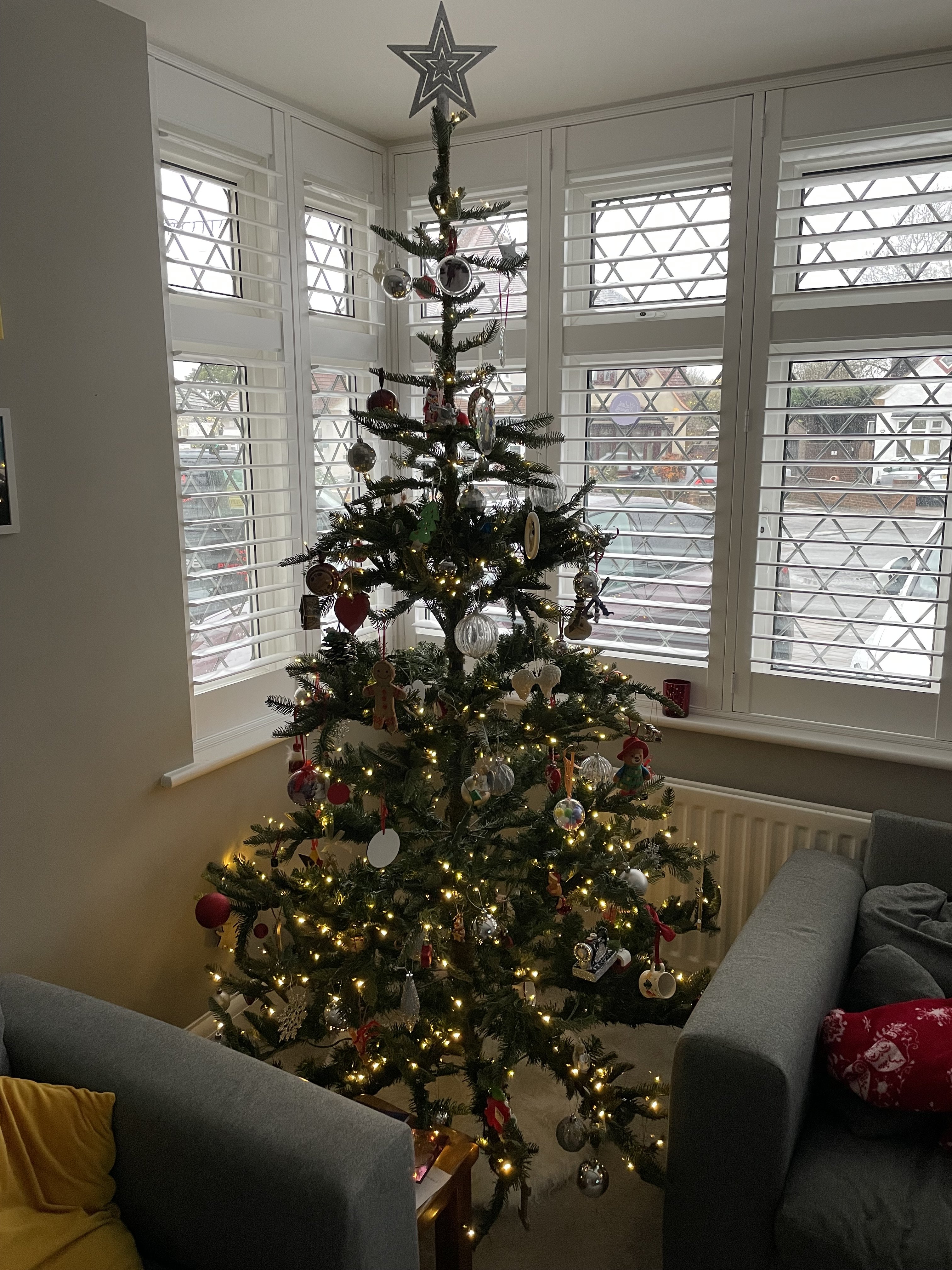 Right, it’s the time of year to get ready for the end of the year. I bought tree about 4/5years ago from Sainsbury’s on their death row after Christmas for about £3. It was potted and I felt sorry for it so we brought it home, repotted it and later replanted it in the garden. Yesterday I dug it up repotted and brought it inside. After Christmas it will go back outside and live another year. I know it’s not the best looking and maybe it’s a bit skinny for some but it’s the right height and width for our modest house. Also try buying a potted tree that height, a 4foot potted tree is about £70.