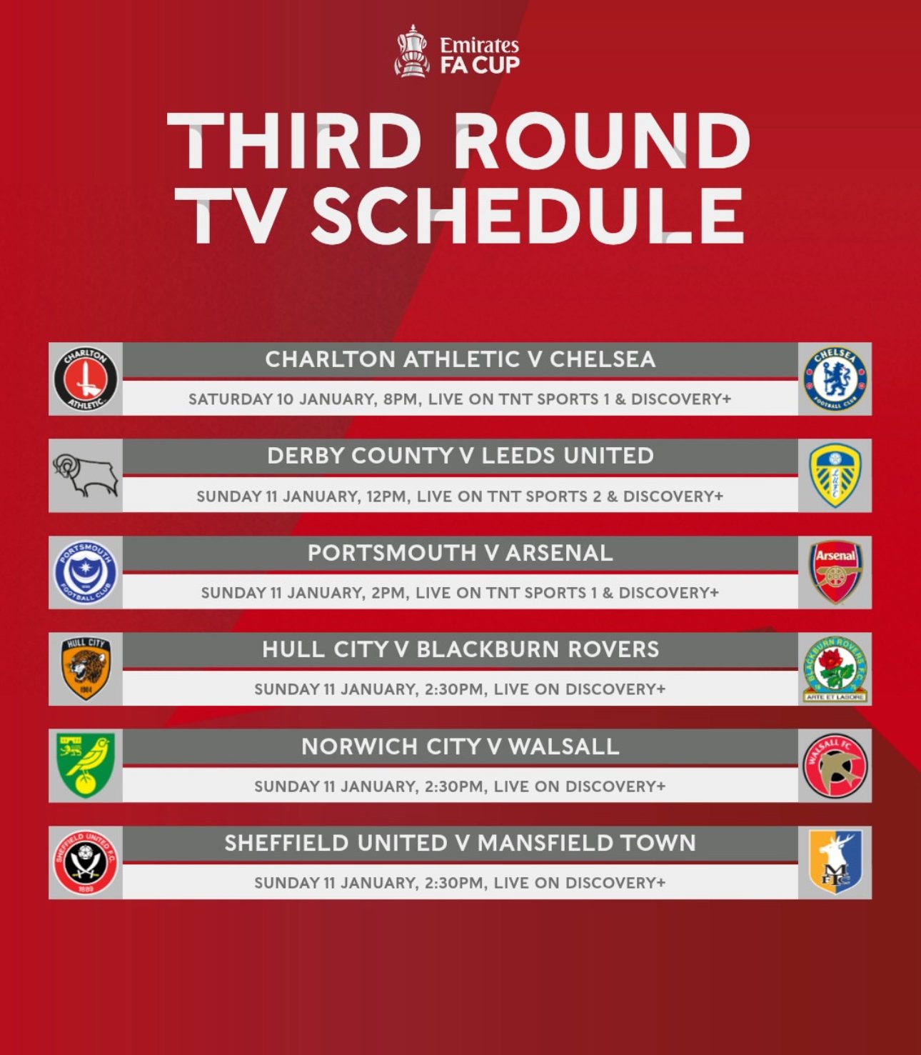 F A Cup 25/26 - 3rd round Charlton v Chelsea - 10th Jan @ 8pm (pg 12)