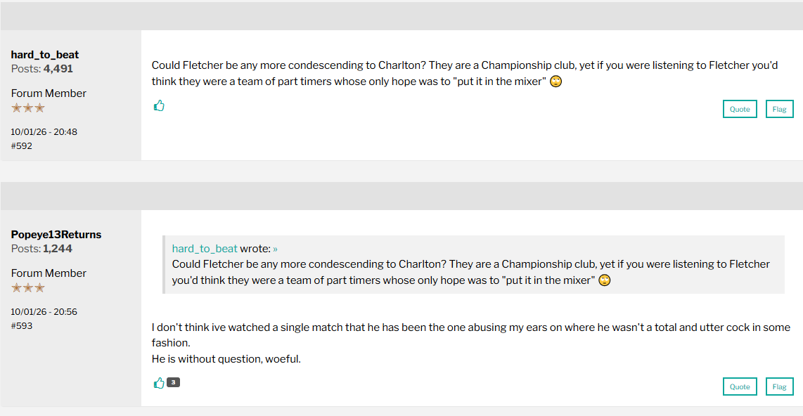 He’s just being an angry troll and picking arguments for no reason. Apparently commenting on the turnstiles and blocked toilets is a direct attack on Jones and we should all be content to nibble bread and water whilst sitting on spikes and walking through oceans of piss. Otherwise you’re not a proper fan who is there for the right reasonSporadicAddick said: