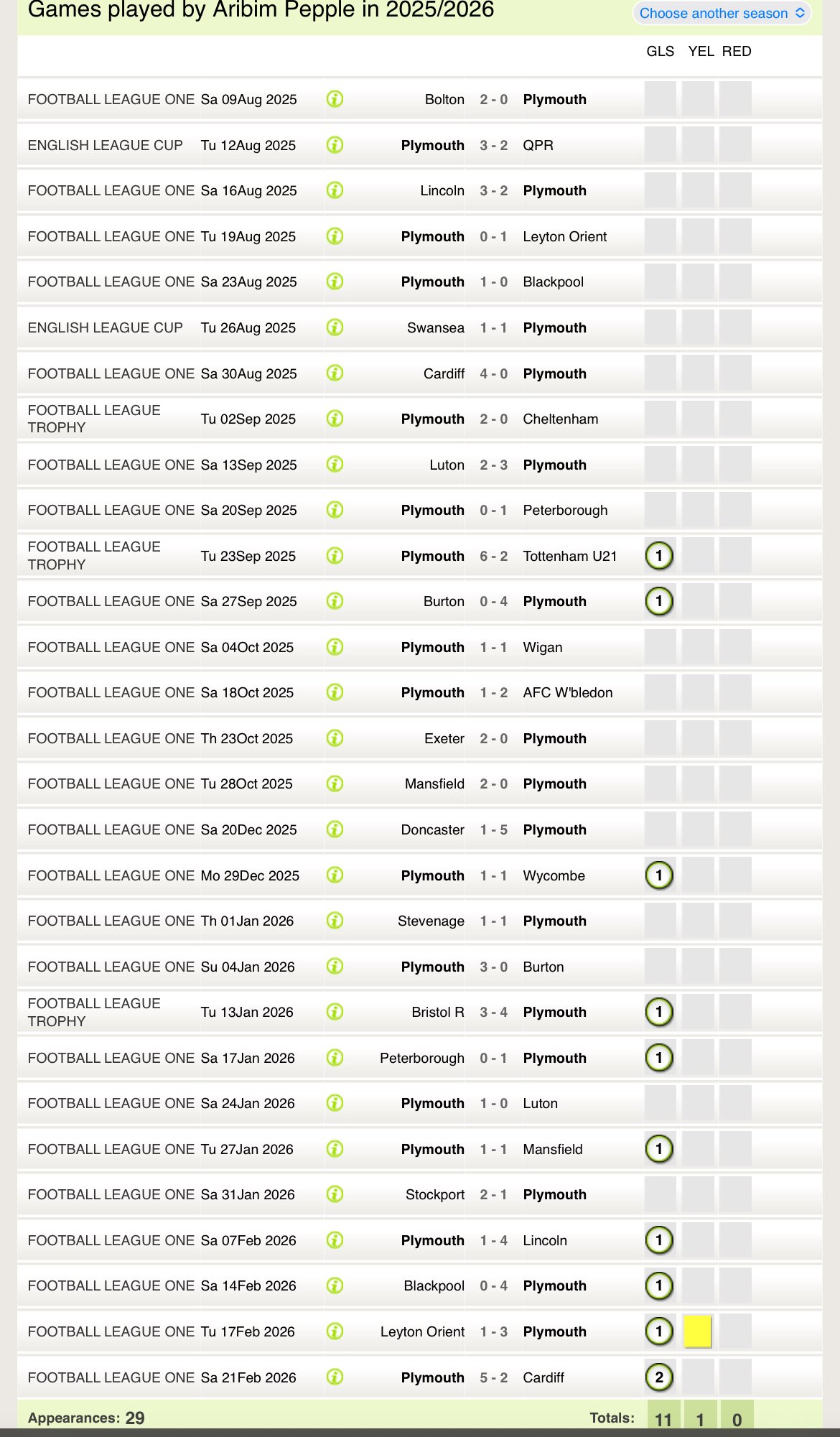 Looking him up he’s only made 13 starts in the league for Plymouth this season, 11 appearances have been off the bench.