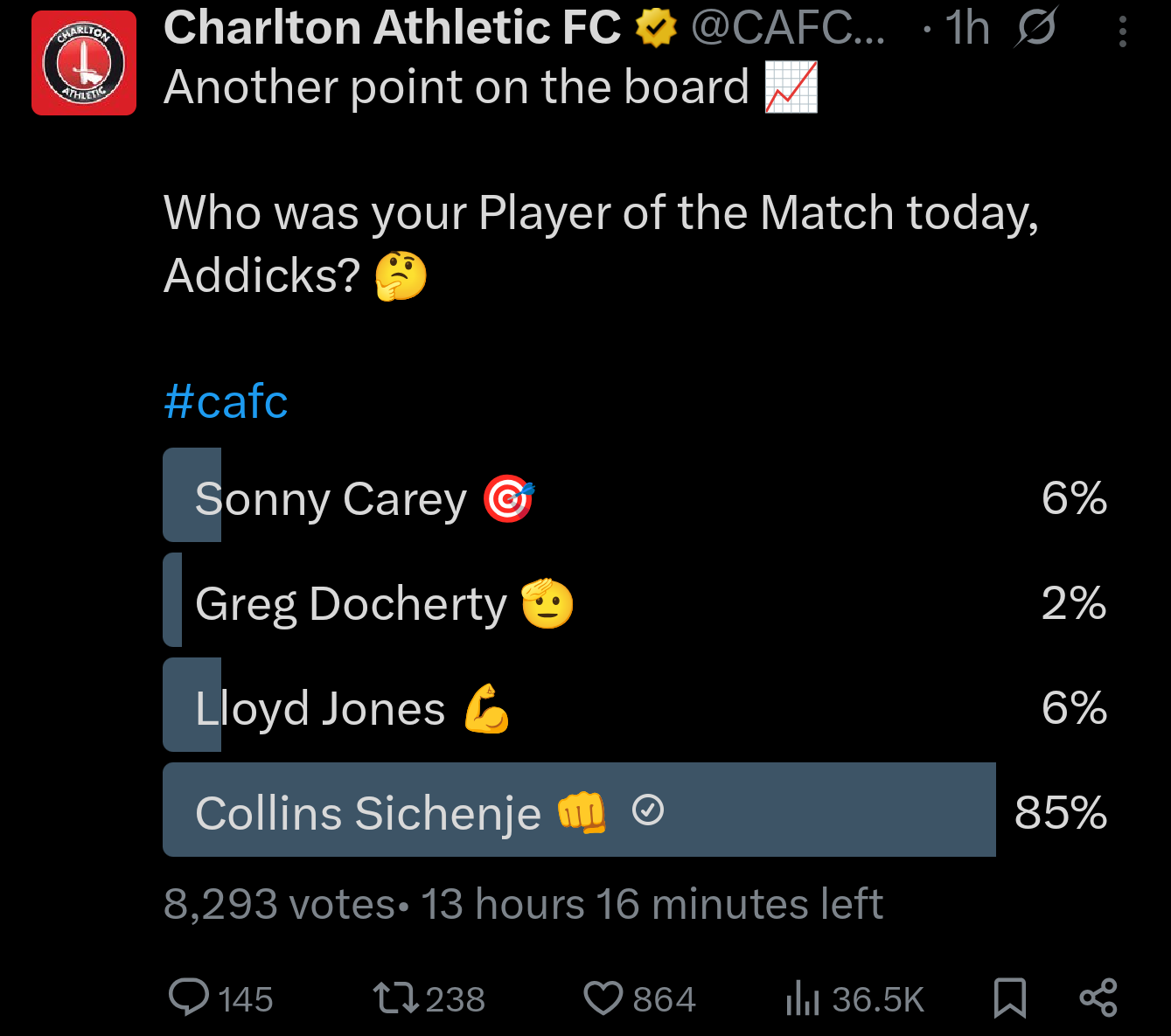 Not sure how many of the people voting on the MOTM poll will have a fan IDCaptainRobbo said: