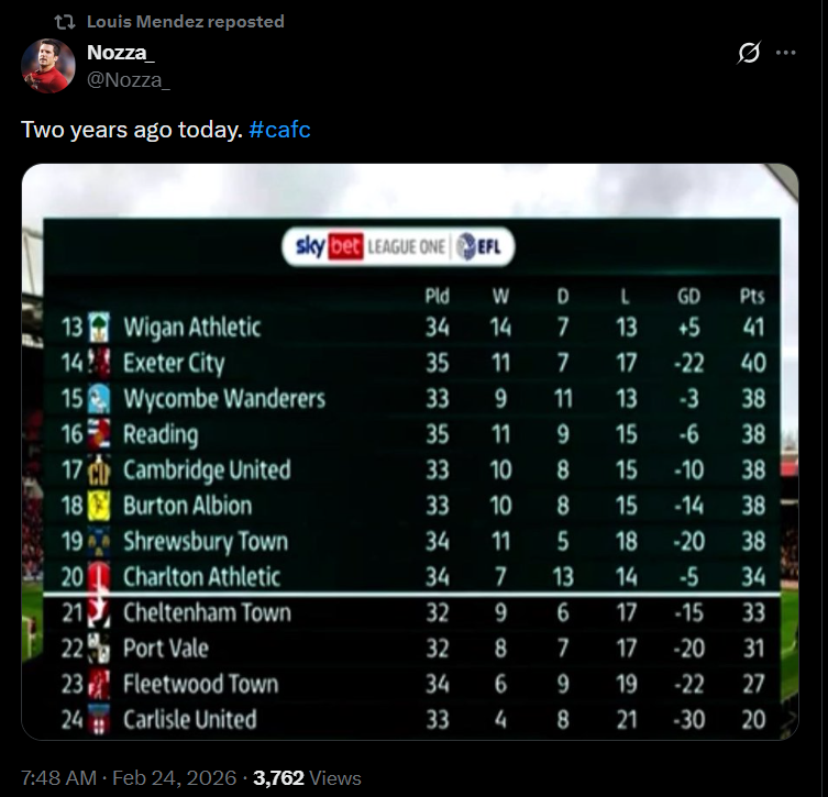 You’re right, it is possible, just look at Carey, he was on a free but consider the disadvantages we have. We have the 3rd worst player budget in the league. For the best players in L1 we will get out bid by every other team when offering wages. Also look at the options for the player, does he want to uproot his family to move to Charlton when there’s say a 50% chance that we are relegated and the family would have to be uprooted again. No team is safe from relegation but he would have more confidence moving to Wrexham, Birmingham or QPR, simply because he knows the player budget is higher. Saying we should pluck great players from L1 (and not the ones we signed) is purposely over simplifying the process and wilfully ignoring the realities of the market. Money and certainty talks in this world and we are bottom three when it comes to that, at the moment we’re outperforming the market, 12 more points and it will have worked.Crispywood said: