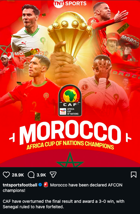 SELR_addicks said:"The CAF Appeal Board decided that in application of Article 84 of the Regulations of the CAF Africa Cup of Nations (AFCON), the Senegal National Team is declared to have forfeited the Final Match of the TotalEnergies CAF Africa Cup of Nations (AFCON) Morocco 2025 (“the Match”), with the result of the Match being recorded as 3–0 in favour of the Fédération Royale Marocaine de Football (FRMF)."